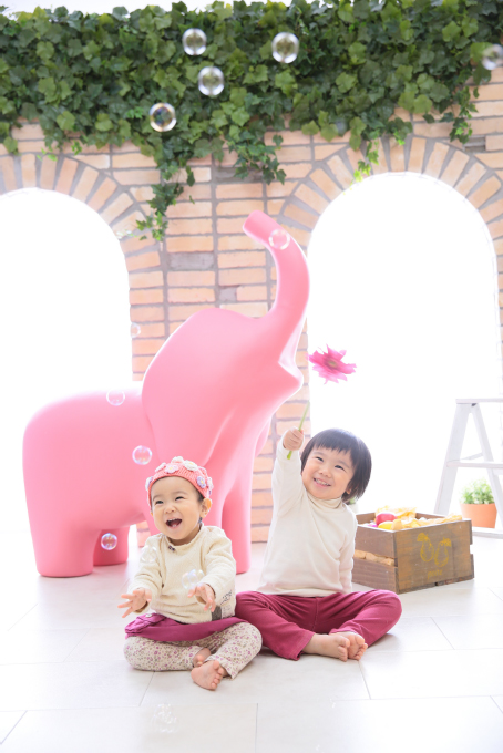 ららぽーと海老名 素敵な記念写真を撮ってもらえる「写真 スタジオ holly hock ららぽーと海老名」様々な目的にあわせて撮影してくれます。柔らかいピンクのぞうさんはシーンを彩るオブジェの一つ。ぞうさんの背中に乗って、ハイチーズ!